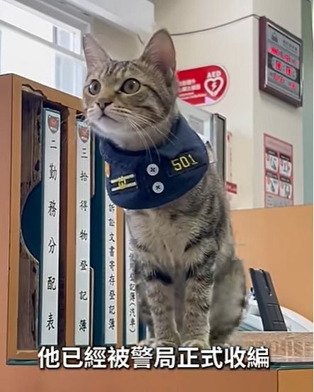 牠是編號 501 的貓警長,不只是員警們的吉祥物,更是許多長者、弱勢族群走進派出所時的「心靈安撫師」。