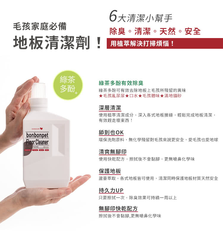 ‧綠茶多酚可有效去除家中地板狗味或者貓咪尿味,毛孩家庭專用植萃安全地板清潔劑.