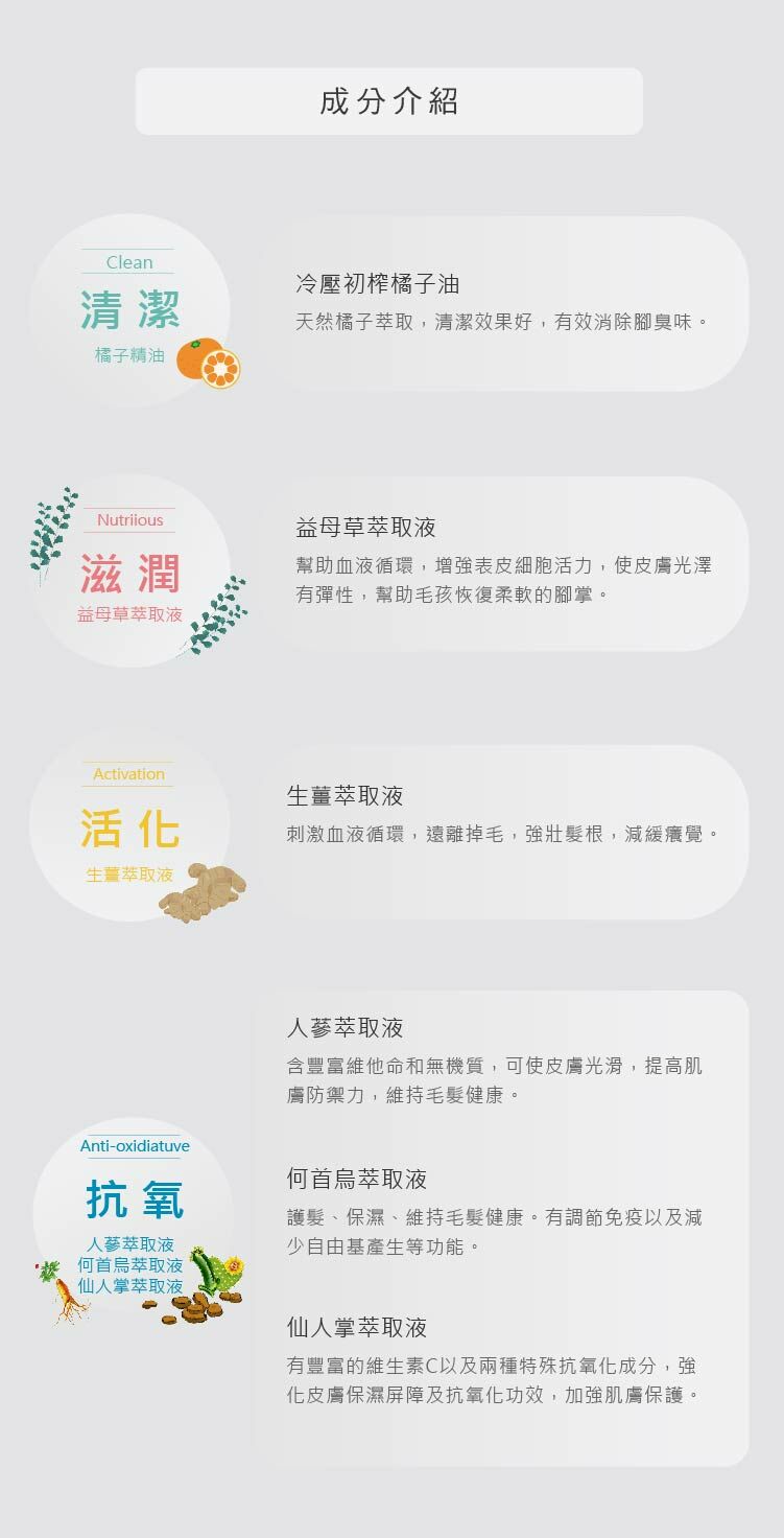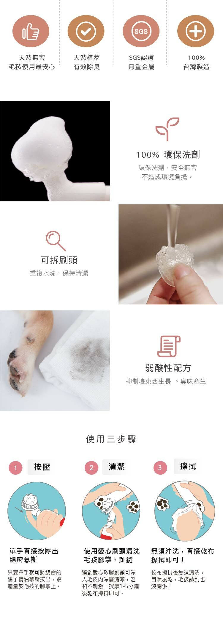◎ 草本營養精華成分,刷洗後不用沖水!直接拿乾毛巾擦拭即可